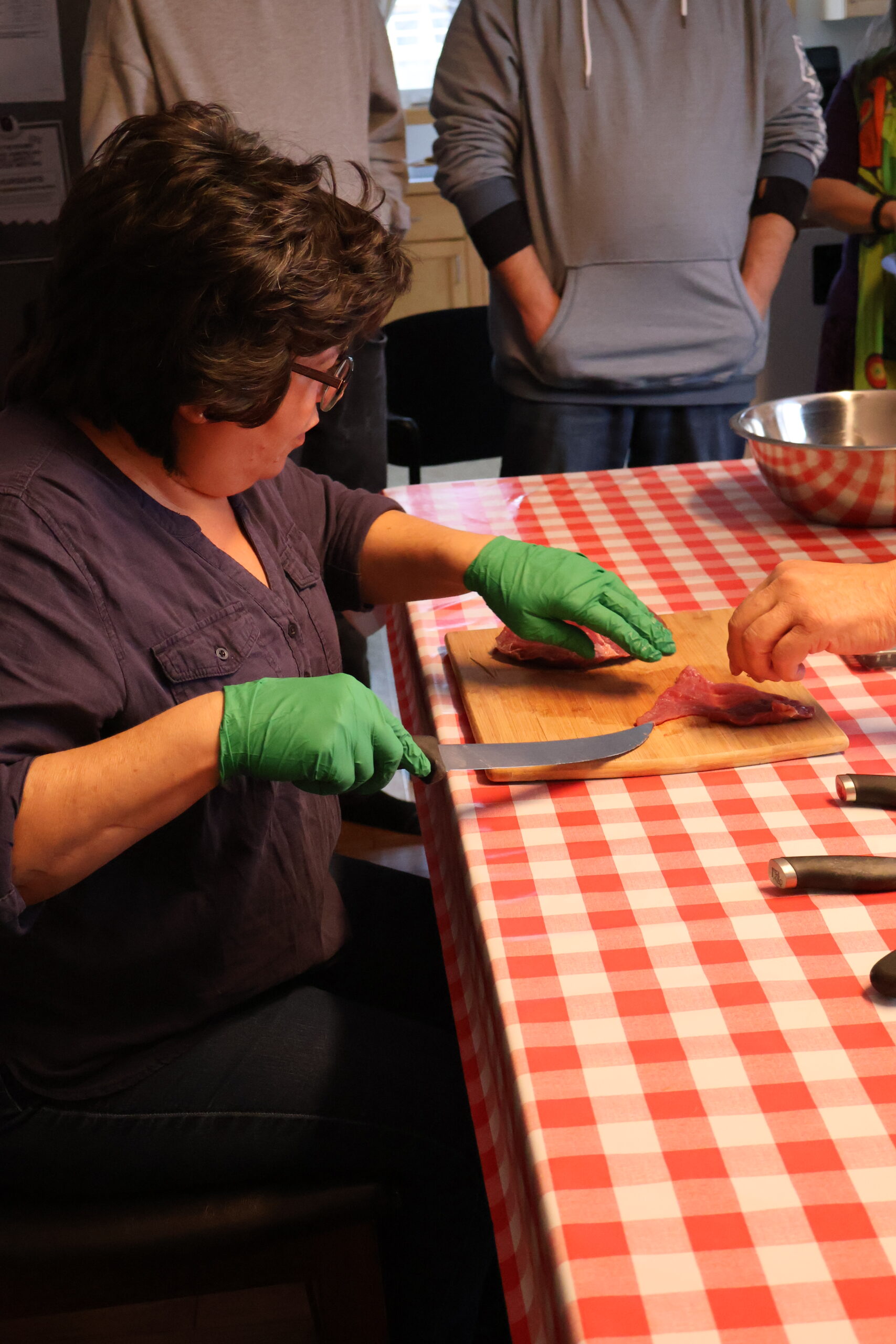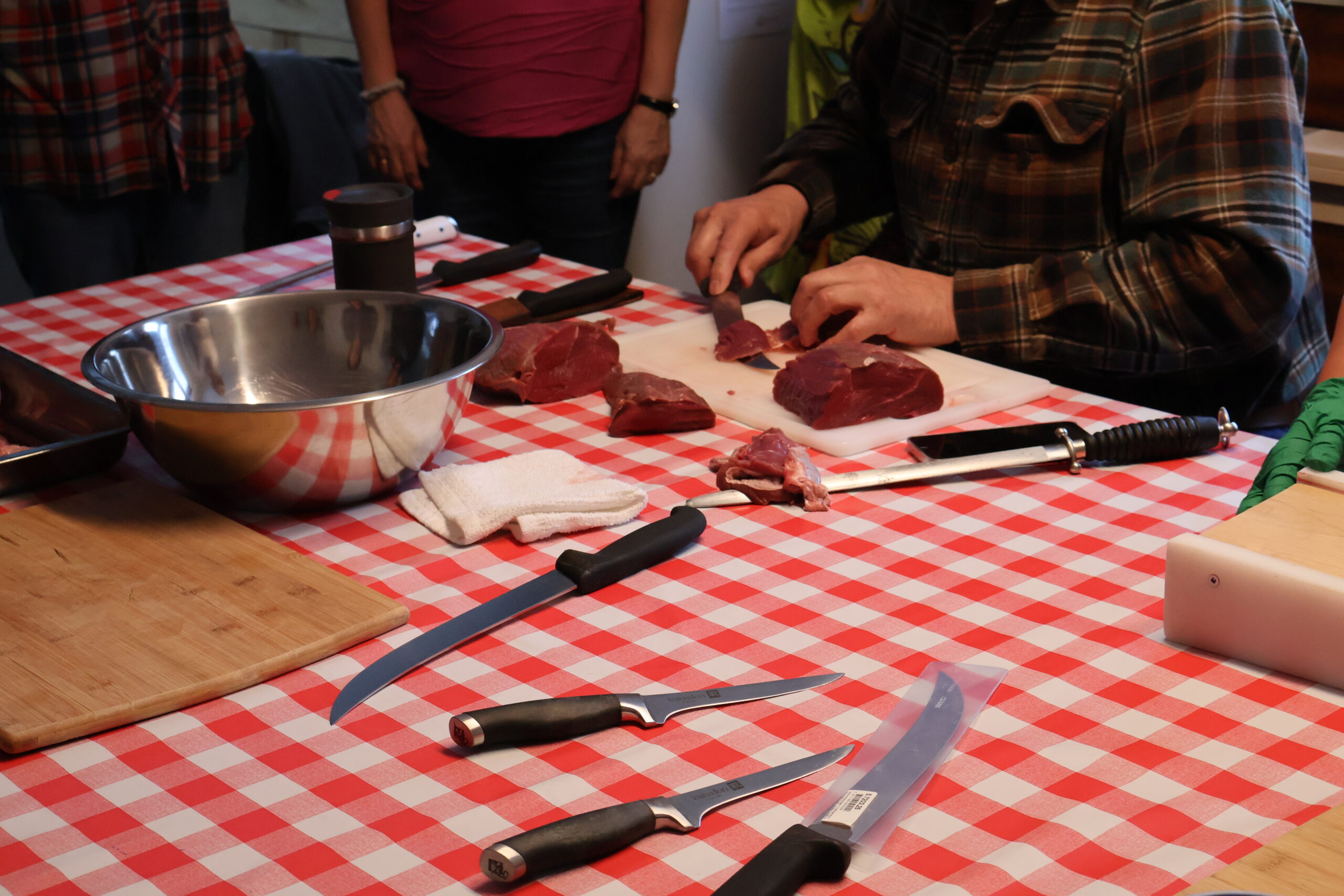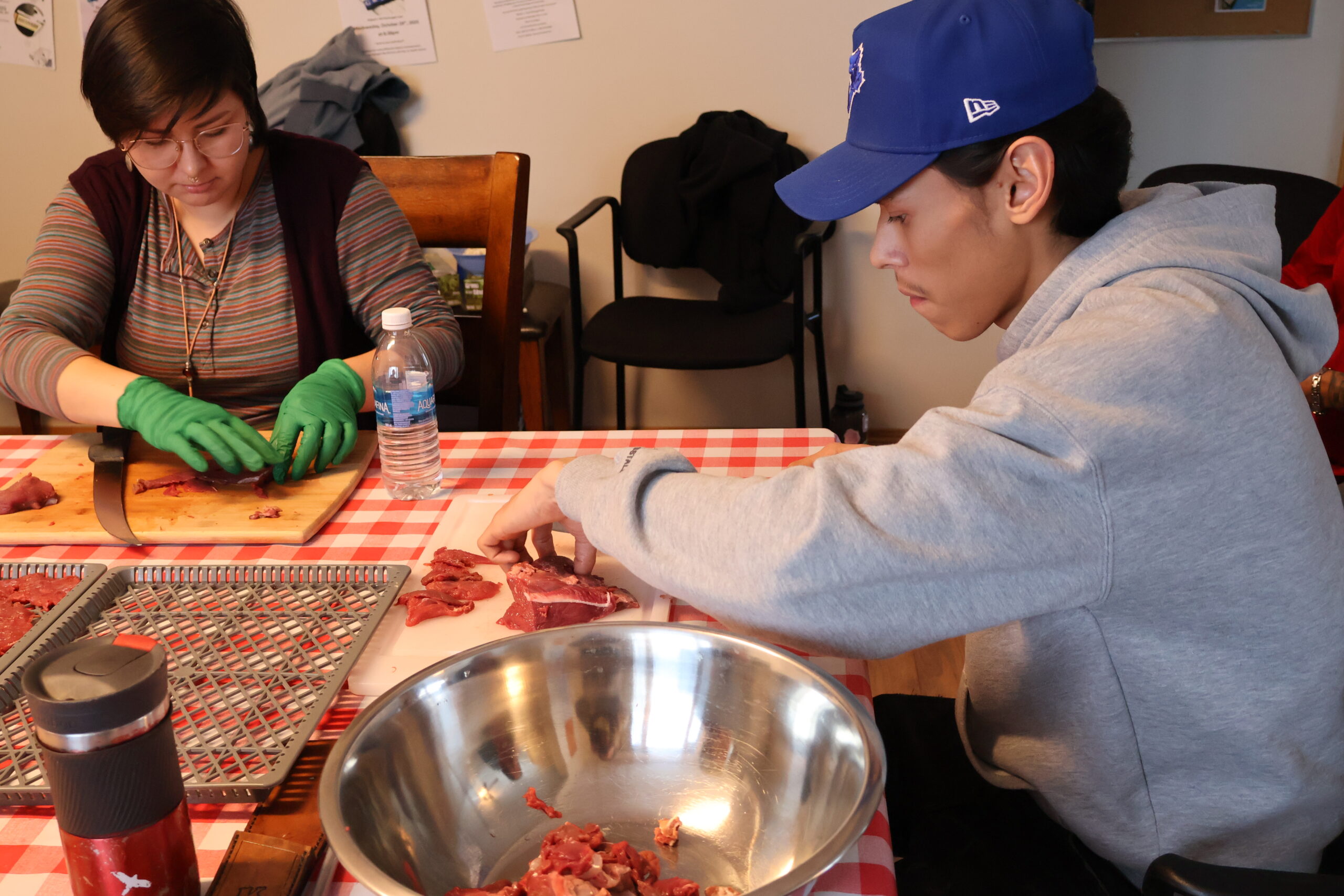 One afternoon was spent making dry meat with Kenny: everyone got hands-on experience cutting moose meat, skinning, learning which knives to use, and preparing different cuts. Laughter echoed as Kenny shared hunting stories and participants swapped funny mishaps. Many reflected the next day that this experience helped to ground them and allow them to reconnect and focus more fully on the material.