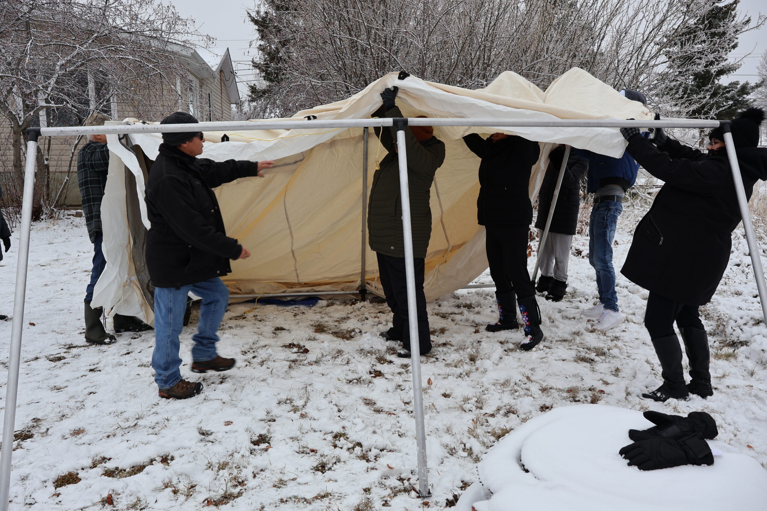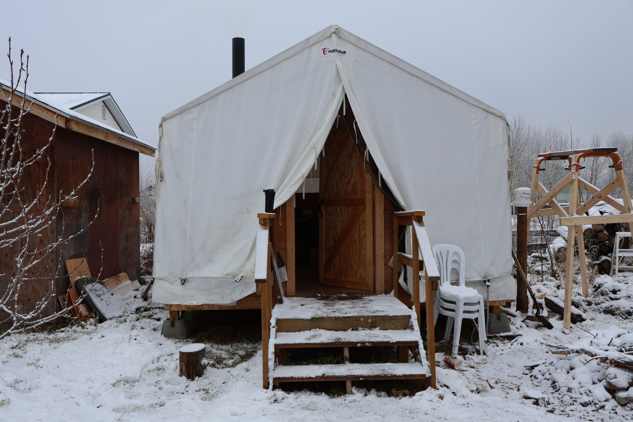 The second on the land adventure was setting up a wall tent with Richard and Barb. We split into two teams, and everyone got to practice pitching a wall tent—an important skill for staying safe during land-based programs. Afterward, we feasted on cheese bannock and the dry meat we’d prepared earlier, while Richard regaled us with stories that made the afternoon feel magical.