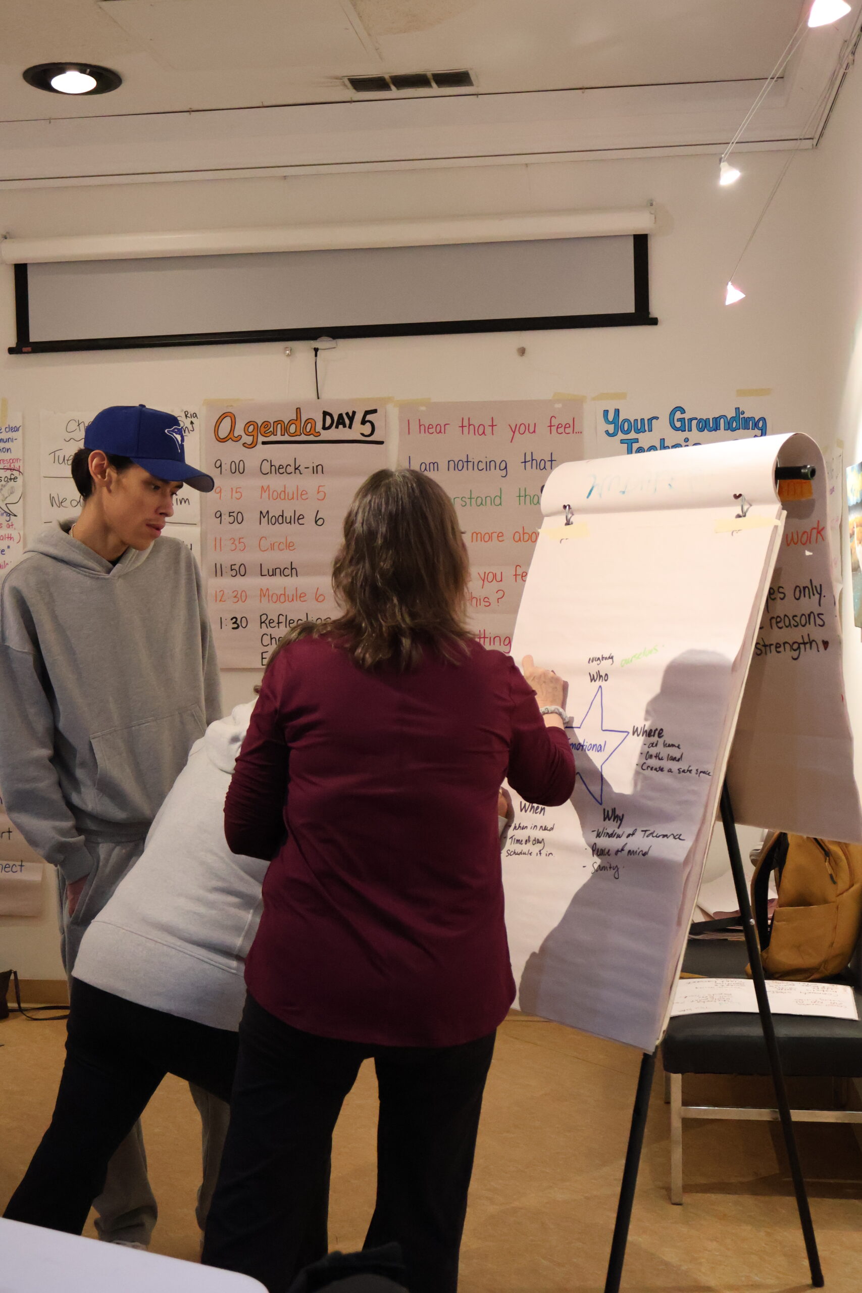 Over five days, the group explored all six Supporting Wellbeing training modules. Highlights included roleplaying scenarios, on-the-land activities with Elders, leading circles, and deep discussions on lateral violence.