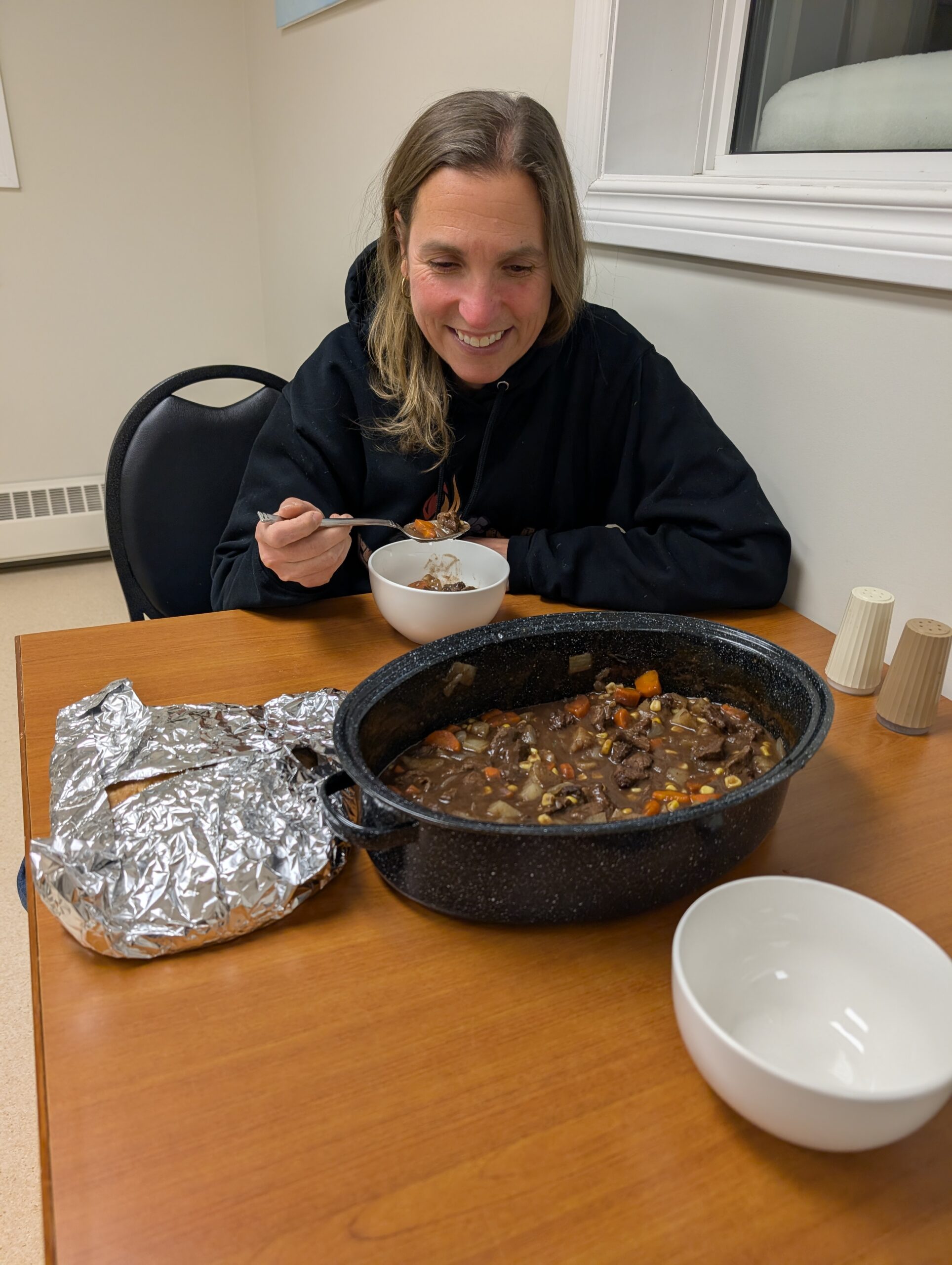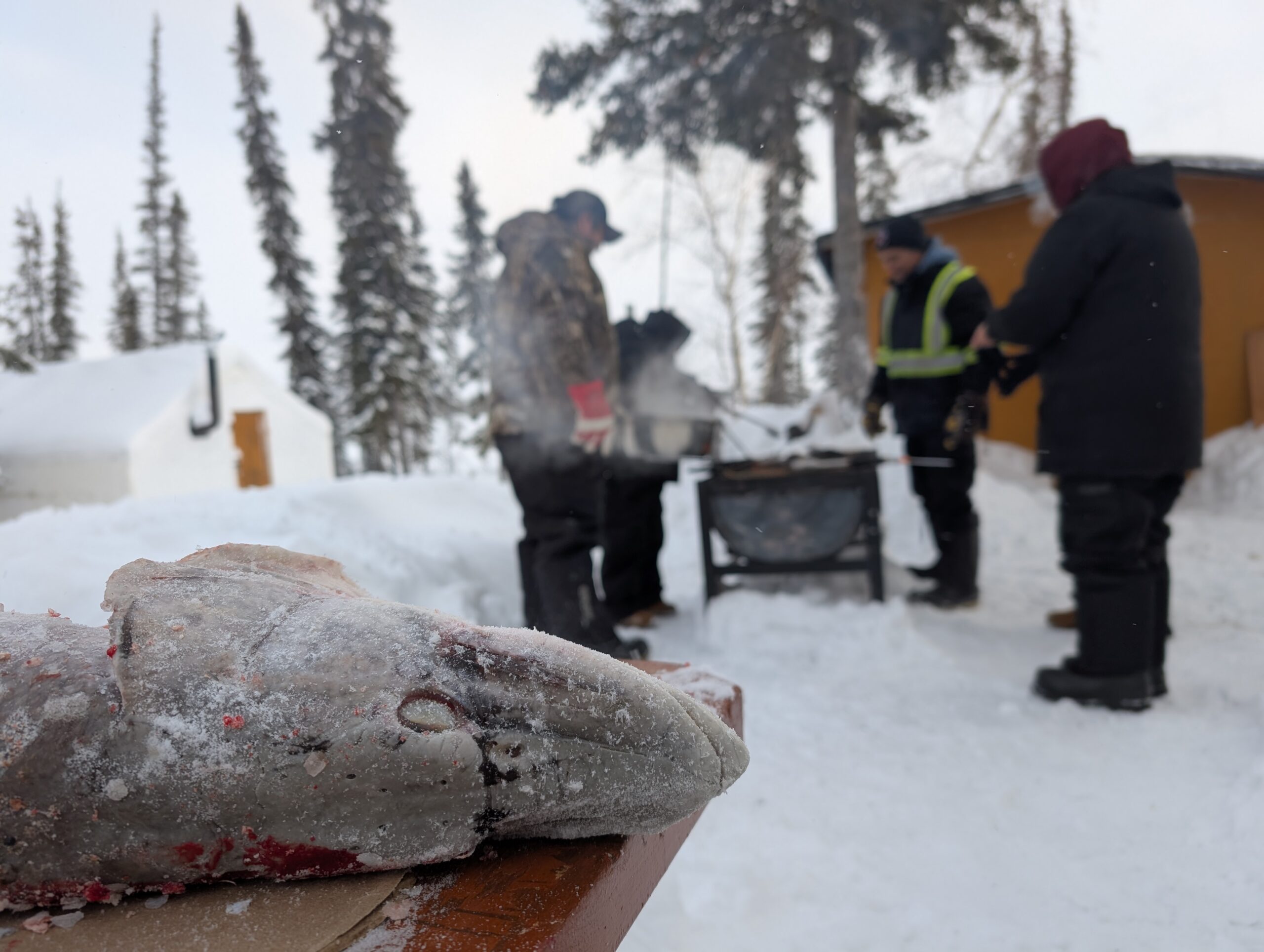 Wendy and Cole drove out to Whatì from Yellowknife, enjoying the beautiful scenery on the way, and a comforting caribou stew once they arrived at their hotel. Speaking of food — the cooks served the group tasty snacks, lunches, and dinners all week. The TG staff took great care of everyone and never let the coffee run low!